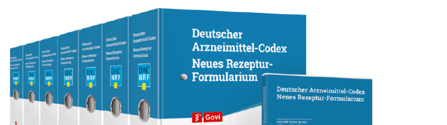 • DAC-NRF: geballtes Wissen der Rezepturexperten von der Avoxa. Für einige Leistungen wie Einsicht in das Online-Werk sowie Rezepturfinder und Rezepturhinweise ist eine Registrierung als DAC/NRF-Abonnent*in nötig.