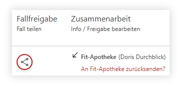 In der Fallübersicht des / der Freigebenden ist im Tab „MEINE FÄLLE” in der Spalte „Zusammenarbeit” zu sehen, mit wem der Fall geteilt wurde: