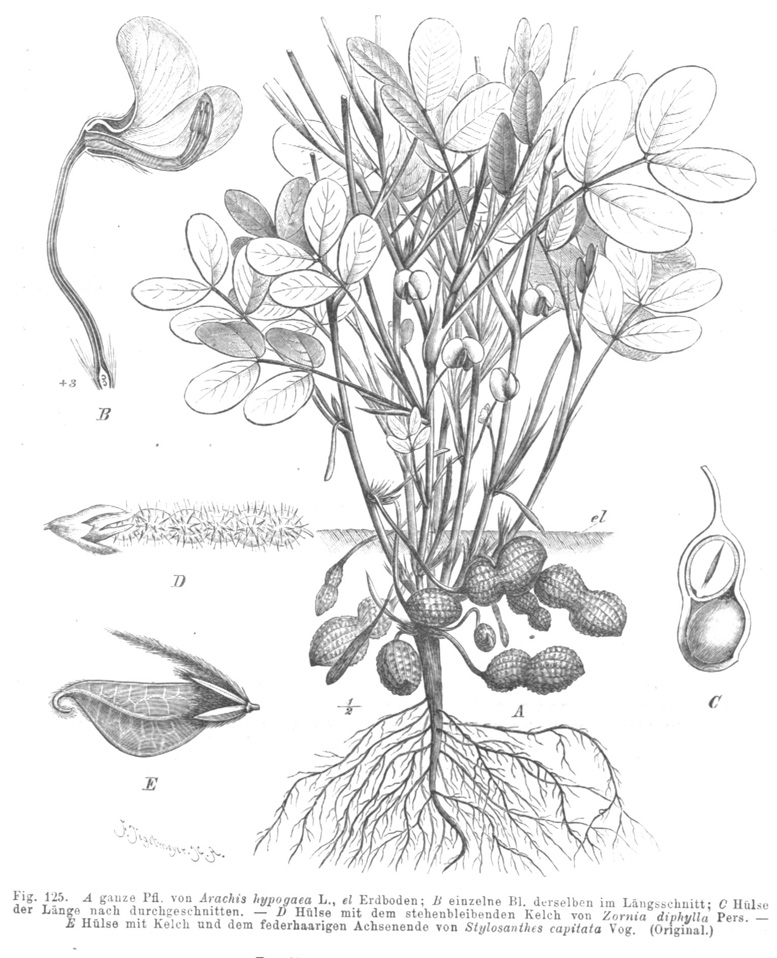 - Trotz Zugehörigkeit zu den Leguminosen (syn.: Hülsenfrüchtler) verhält sich die Frucht von Arachis hypogaea anders als die sich öffnenden Hülsen: sie bleibt geschlossen und gehört demnach morphologisch tatsächlich zu den Nüssen!
