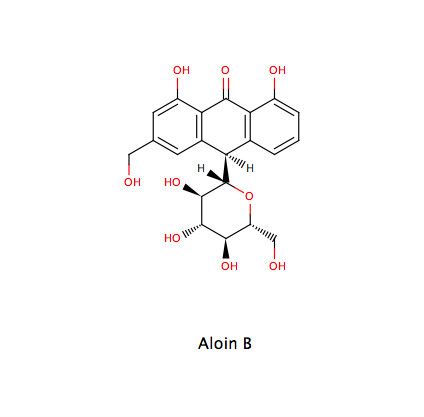→ C-Glykoside: Cascarosid A, B, C, D, Aloin A, B sowie Chrysaloin (= 11-Desoxyaloin)