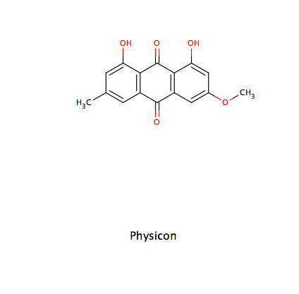 - Mehr als 2,5% Hydroxyanthracen-Derivate, berechnet als Rhein: Rhein, Rheumemodin, Aloeemodin, Physicon und Chrysophanol (keine C-Glykoside!)