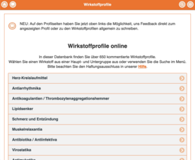 Über 650 Wirkstoffe mit den wichtigsten Informationen und Erklärungen. Die Wirkstoffprofile werden Ihnen von SimpleSoft in Zusammenarbeit mit ratiopharm bereitgestellt.