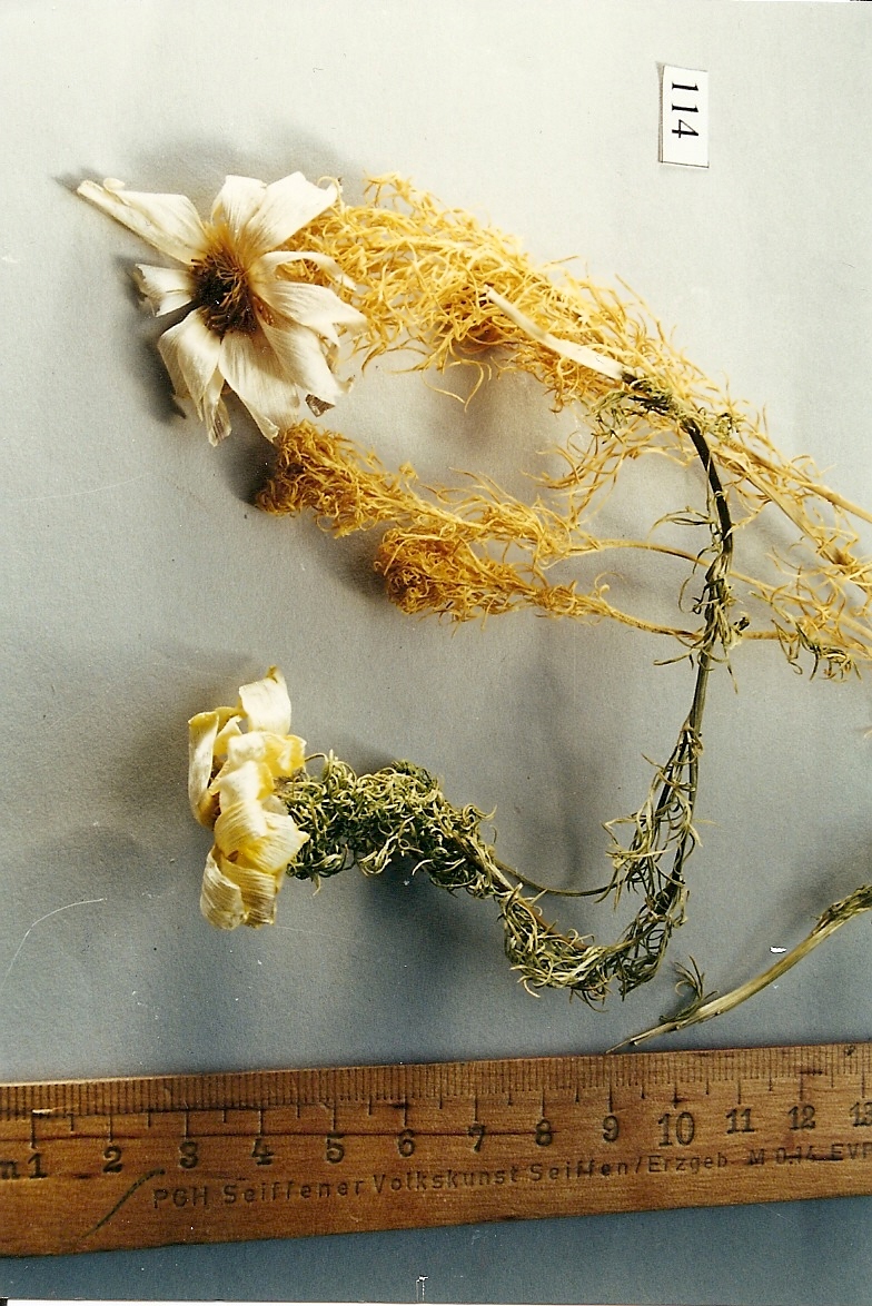 - Kugeliger Fruchtstand aus dicht gedrängten, weiß behaarten Nüsschen