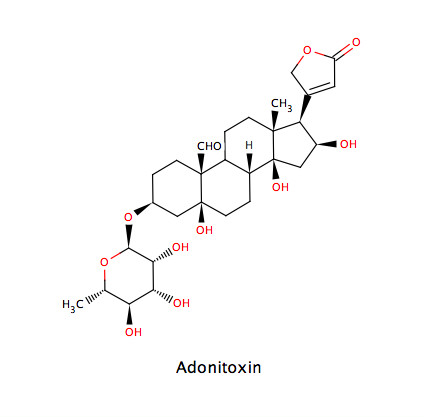 - 0,25% Cardenolid-Glykoside; Hauptglykosid: Cymarin (bei Hydrolyse entstehen k-Strophantidin und D-Cymarose), kleine Mengen Adonitoxin (isomer mit dem im Maiglöckchen vorkommenden Convallatoxin)