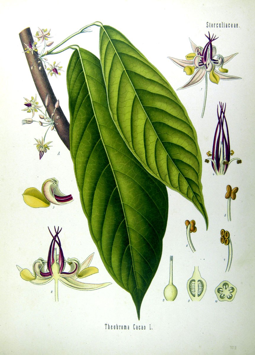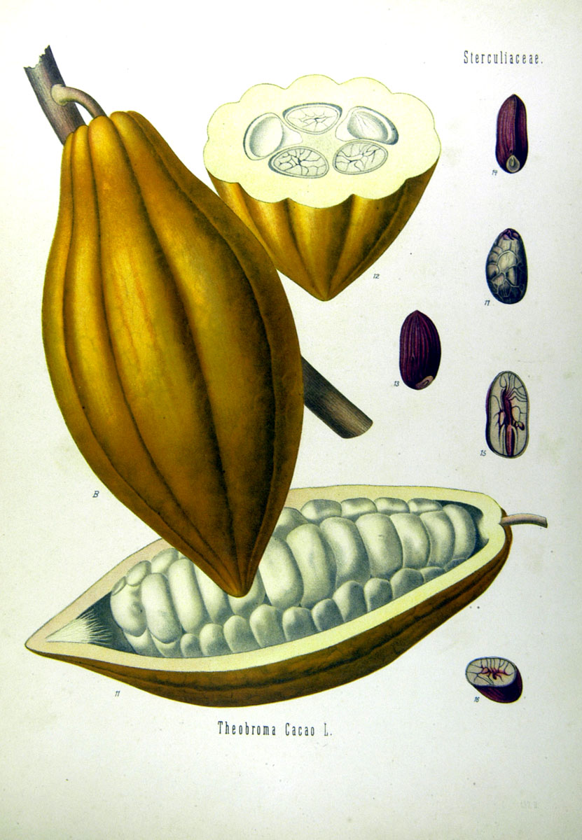 Droge: Cacao semen, Cacao oleum / Kakaobohnen, Kakaobutter