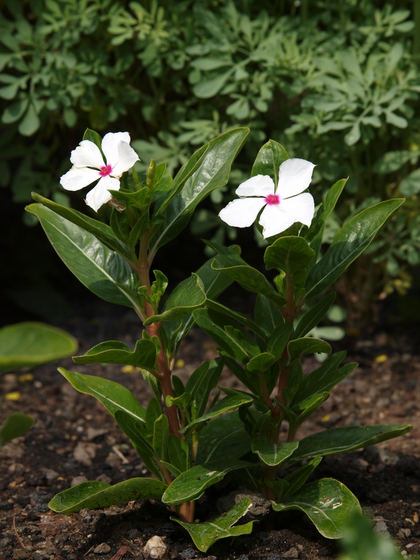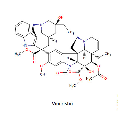 Monoterpen-Indol-Alkaloide: Vinblastin (ca. 50 g/Tonne), Vincristin (< 3 g/Tonne)