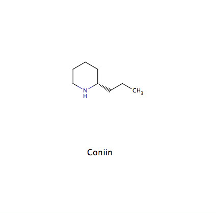 - Coniumalkaloide mit Coniin, γ-Conicein, Conhydrin, Pseudoconhydrin (mit Piperidin als Grundgerüst; werden als Pseudo-Alkaloide angesehen, da die Biosynthese im eigentlichen Sinne nicht von Aminosäuren ausgeht)