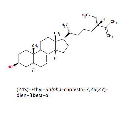 - Phytosterole (1%): (24S)-Ethyl-5α-cholesta-7,25(27)-dien-3β-ol, β-Sitosterol und andere Sterole