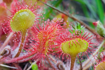- Charakteristisch sind die mit Klebedrüsen besetzten Blätter der Pflanzen, die ihr den Fang von Beute und so das Gedeihen auch in nährstoffarmen Gebieten ermöglichen