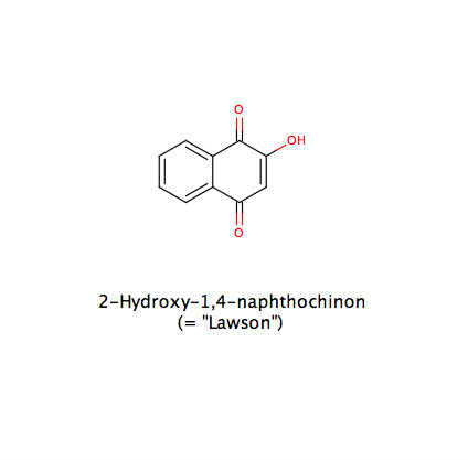 Naphthochinoide: Lawson ("Henna-Farbstoff") bzw. dessen Vorstufe 1,2,4-Trihydroxynaphtalin-4-β-O-glucosid