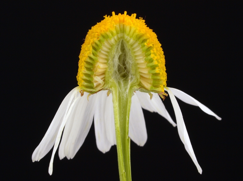Allgemein: Getrocknete Blütenköpfchen mit gelben Röhren- und weißen Zungenblüten. Hohler, spitz-kegelförmiger Blütenstandsboden ohne Spreublätter. Die Ernte erfolgt unmittelbar nach Beginn der Blütezeit (Ende April).