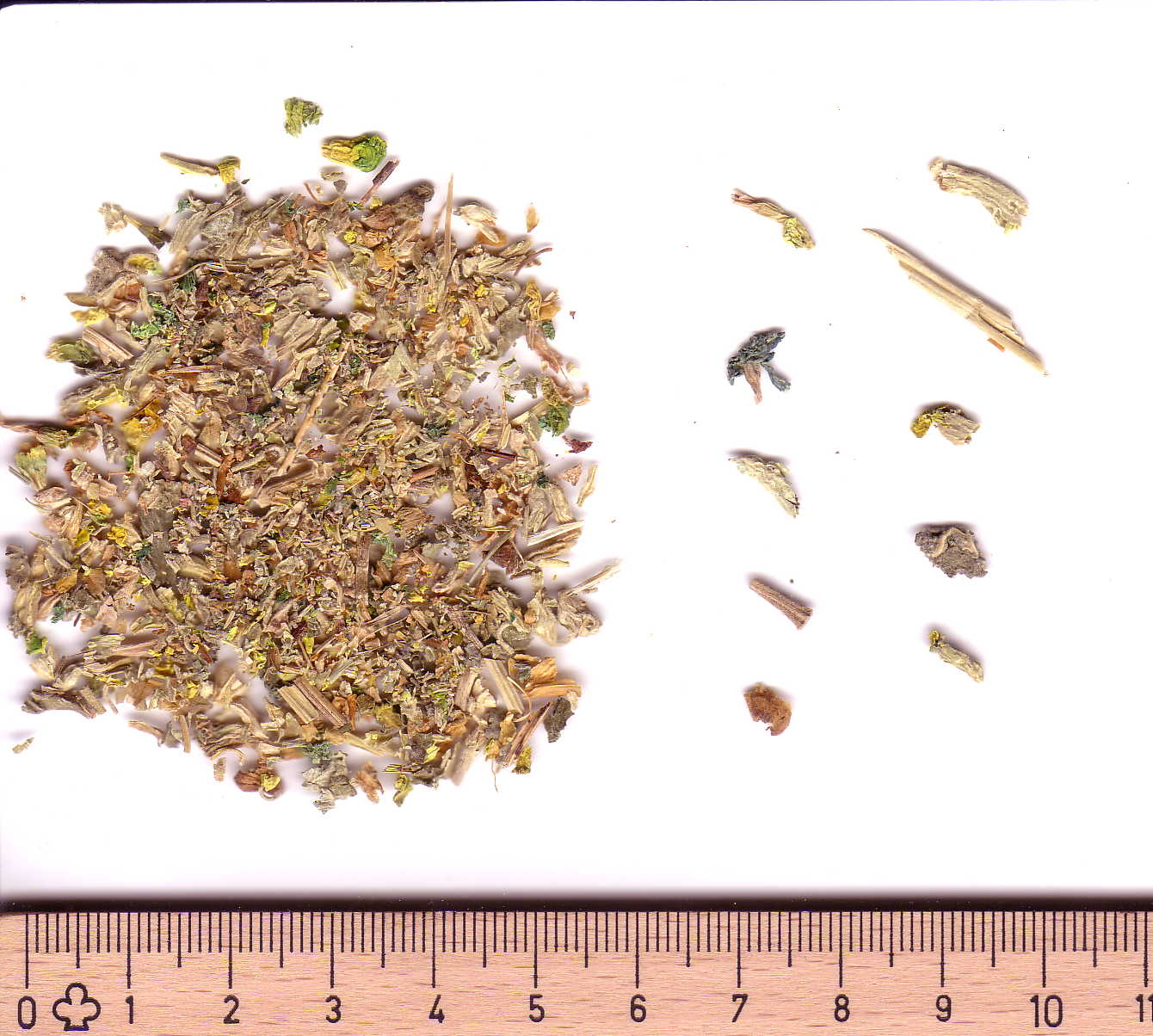 - Bis 3% Flavonoide, v. a. Glykoside von Rutin, Kämpferol und Isorhamnetin