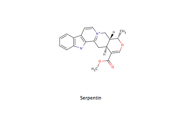 1,5-3% Indolalkaloide (vor allem lokalisiert in der Wurzelrinde): Yohimban-Derivate, außerdem Indolalkaloide vom Ajmalan- und Sarpagan-Typ; Hauptalkaloide → Reserpin, Reserpinin (= Rescinnamin), Ajmalin, Ajmalicin (= Raubasin), Serpentin