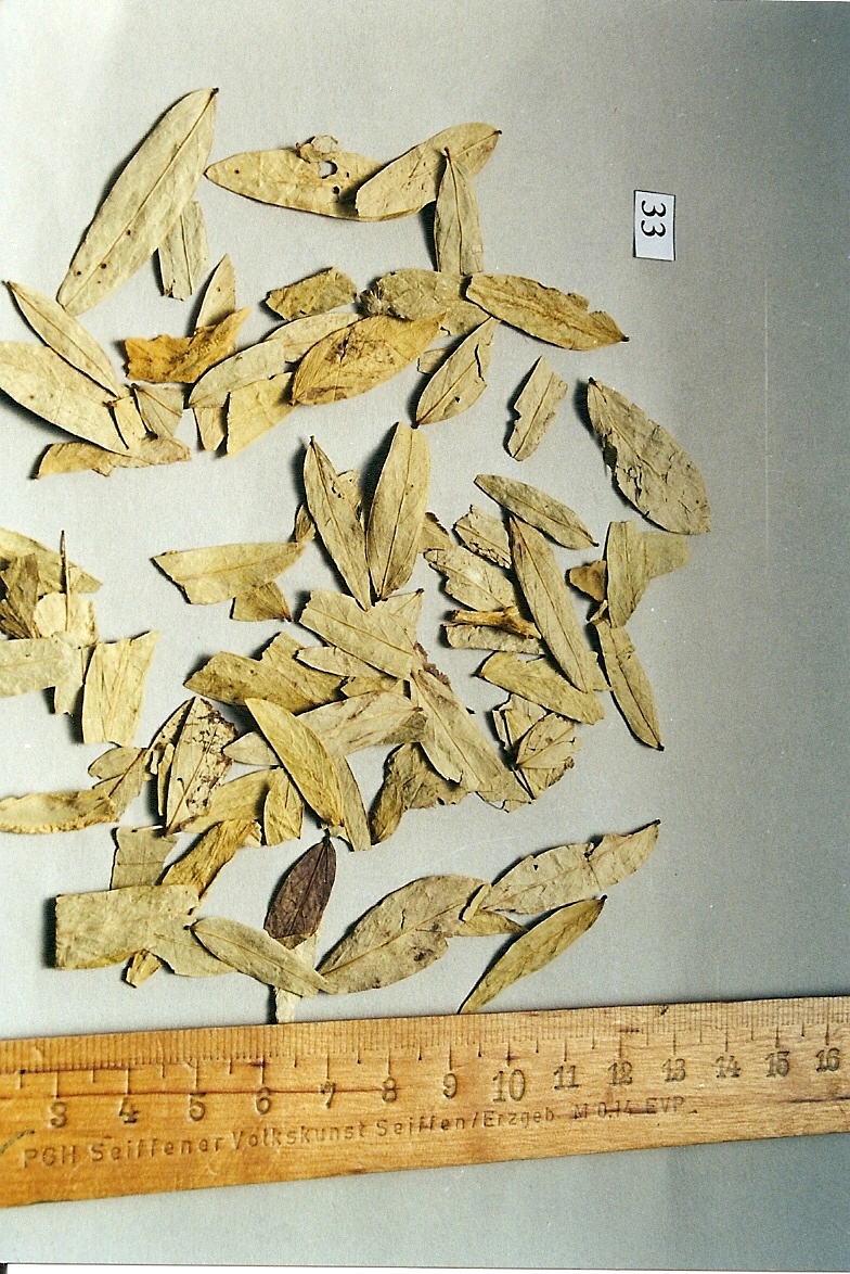 - Unterscheidung beider Senna-Arten: Naphthalinglykosid Tinnevellinglycosid (C. angustifolia) versus 6-Hydroxymusizinglucosid (C. senna)