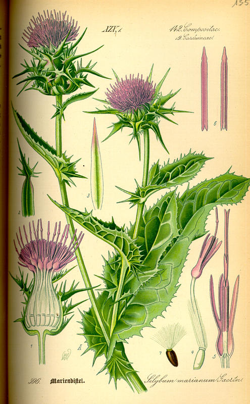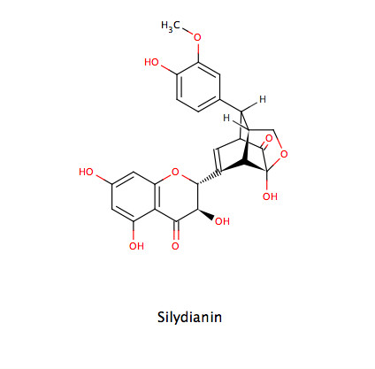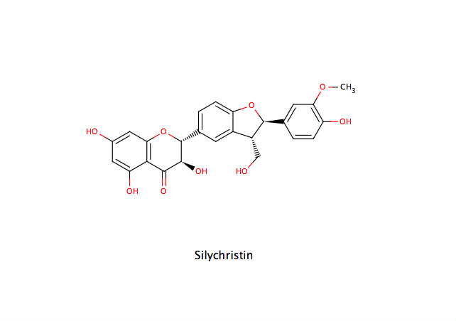 - 1,5-3% Silymarin: Wirkstoffkomplex aus Silybin A, Silydianin und Silychristin (Flavonolignane; unterschiedliche Verknüpfung am Flavonolgrundgerüst Taxifolin) → lokalisiert in der Fruchtwand