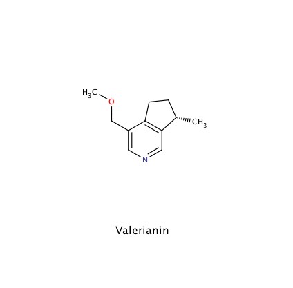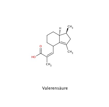 - 0,01% Pyridinalkaloide: Valerianin mit sedierender Wirkung (liegt entweder als Monoen oder Dien vor)