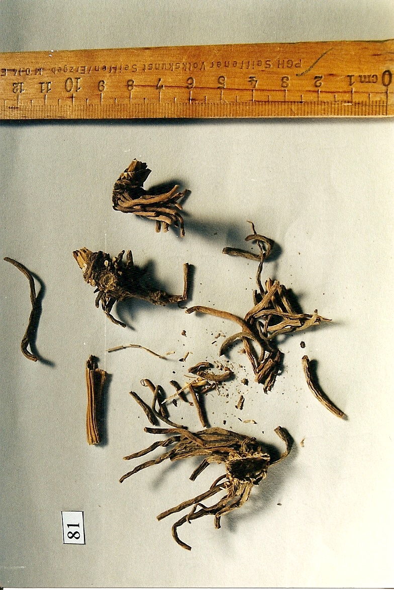 Mikroskopie: Parenchymfragmente, oft mit bräunlichen Plasmaresten; Steinzellen mit verdickten und getüpfelten Zellwänden; Wurzelepidermis mit Haaren; Netzgefäße