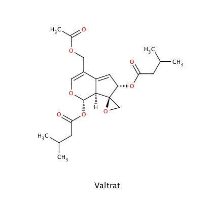 - 0,5-5% Valepotriate (= Valerianaepoxytriester): Valtrat und Isovaltrat