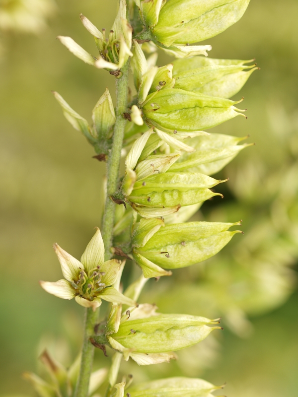 - Entlang der 50 Zentimeter langen Rispe sehr viele 12-15 mm große weiße, grünliche oder gelbliche Trichterblüten