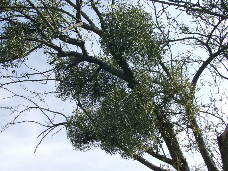- Immergrüner Halbschmarotzer; sitzt auf den Ästen von Laubbäumen und entzieht mittels sog. Haustorien Wasser sowie darin gelöste Mineralsalze aus deren Xylem